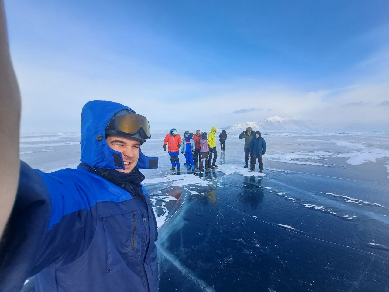 Группа в добром здравии и хорошем настроении окончила активную часть маршрута в Бугульдейке. Позади около 200км прекрасного льда и прохлады Байкала, все молодцы!