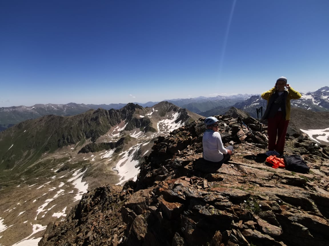 04 июля. Вчера прошли пер. Аюлю, Темир-Кулак и вершину Темир-Кулак, спустились к слиянию рек Дукка и Архыз. Очень классный кемпинг. Сегодня на Лунную и Федосеева. Повторю инфу. На Софийских озерах медведь приходил прямо в палатку 2 ночи подряд. Вокруг тоже много следов. Так что с медведями аккуратнее! Снег активно тает, паводки, тропы подтоплены. Через Псыш новый мост ближе к погранцам в отличном состоянии.